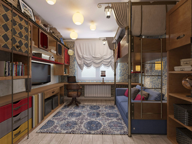 На вид для мальчика подростка 10-16 лет, и вряд ли он будет жить с годовалой малышкой в одной комнате