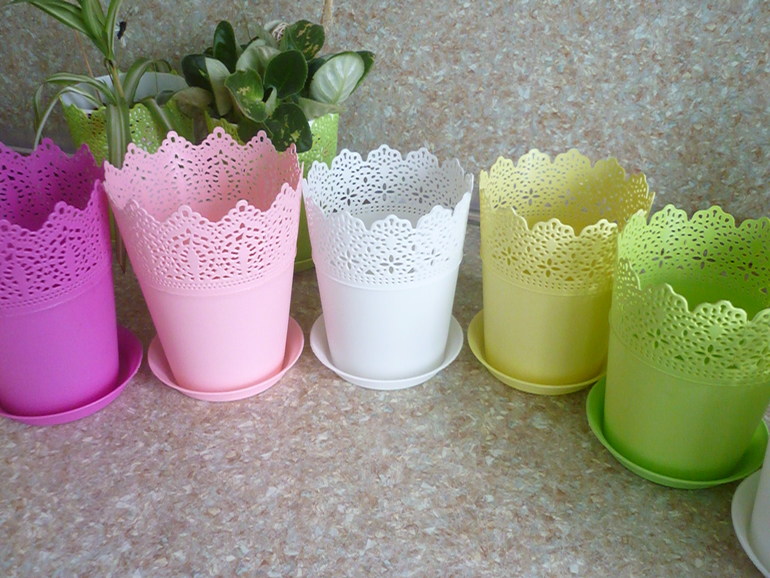 Наташ, они очень красивые, но крайне не удобные для живых цветов. У меня антуриум в таком. Использую как кашпо, сам цветок в пластиковом горшочке. Поливать крайне неудобно. Земля должна быть ниже кружевного края на см примерно, иначе вся вода будет выливаться из кружевных дырочек. Покупала и в фикпрайсе пластиковые (точно такие как у тебя) и в Икее — металлические