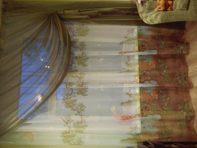 На диване спать не удобно по своему внуку знаю,он практически не спит на нем,а кресло наше всё,может и вы кресло оставите если малыш на него обращает внимание,мне думается оно подходит к джунглям,а тюль чудо как хороша.