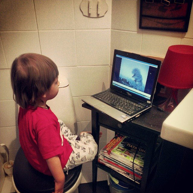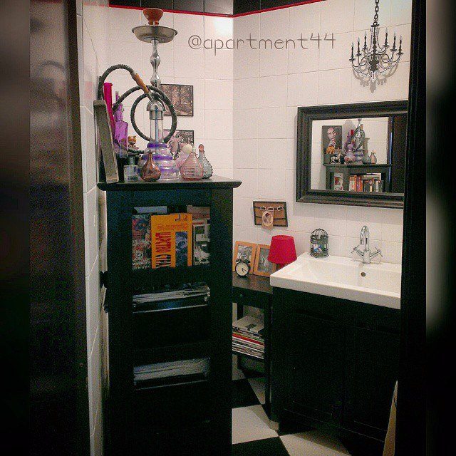 Интерьерное решение ванной комнатыУ нас однокомнатная. Поэтому, (или совсем не поэтому, а просто мне так захотелось оригинальности) наша ванная комната по совестительству бывает кабинетом. И оформлена, соответственно. В основном мы ее используем по прямому назначению, но иногда, я туда прячусь от детей, чтобы посидеть в интернете минут 15, больше не дают