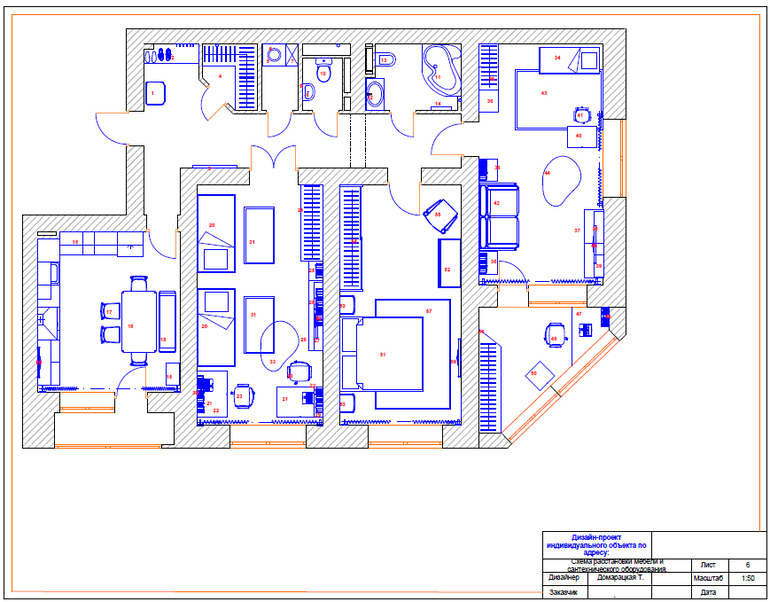 В квартире проживает молодая пара с 3-мя детьми, отличительной особенность является то, что гостиная в привычном нам виде отсутствует. Стены почти все несущие, поэтому только в коридоре получилась перепланировка.