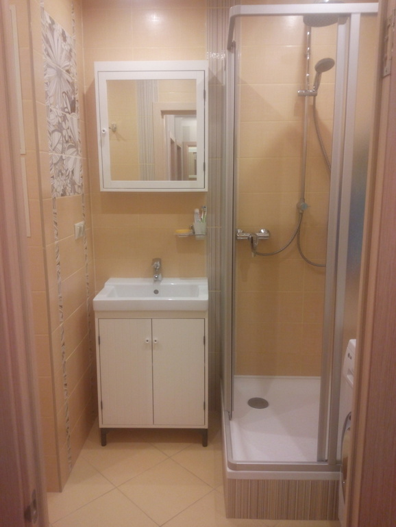 Душевое ограждение и поддон Ravak. Тумба и шкафчик Икеа.