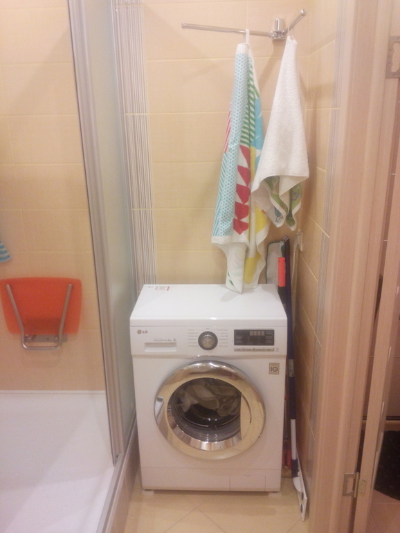 Спасибо) Там мы как-то в замерах промахнулись, ибо по расчетам должен был и шкаф на пол уместиться... Но в целом места хватает)