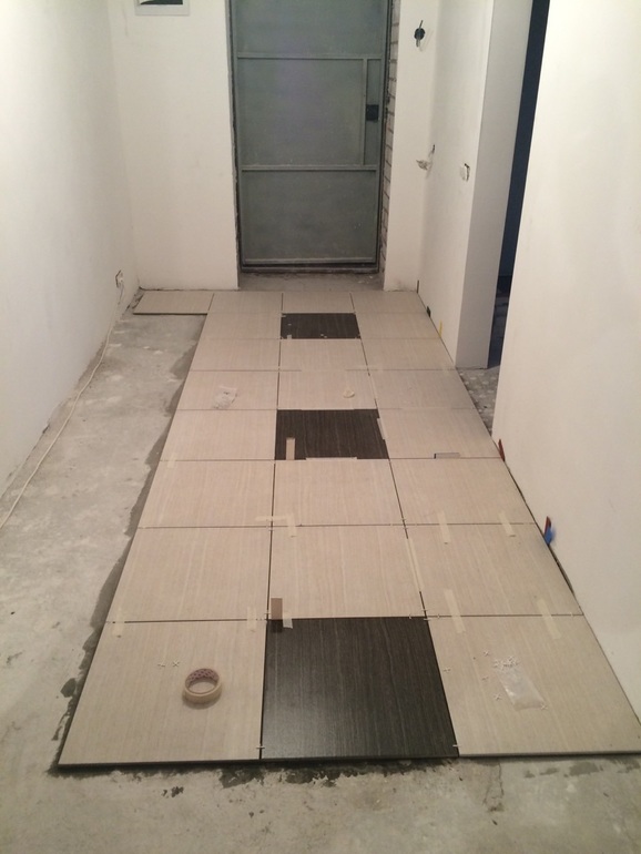 Понеслась...наконец-то мы заложили первую плитку в нашей квартире...Не судите строго,показываю плитку,со временем будет понятно ее выкладка))