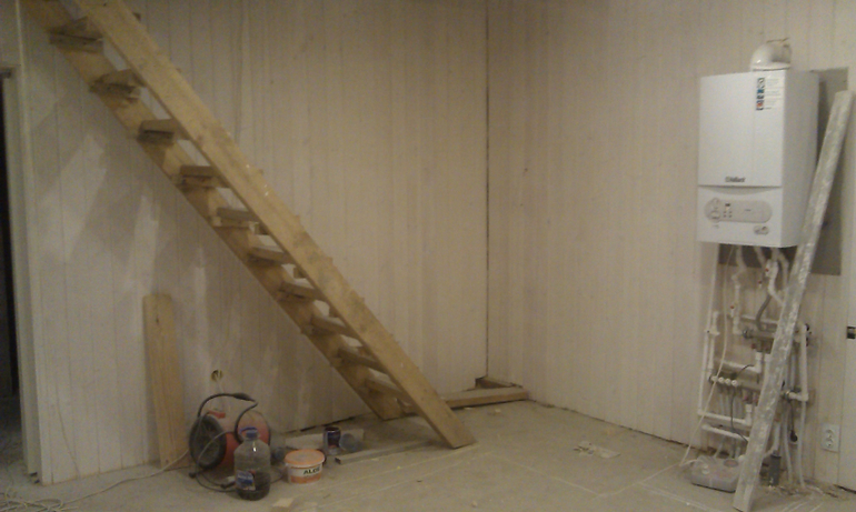 только сейчас стало понятно, что под лестницу остается 165 см. это как раз расстояние от котла до стены.