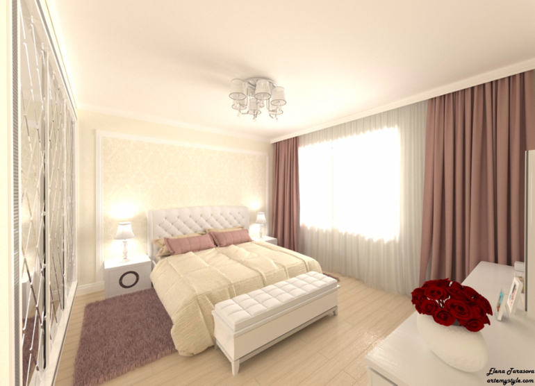 Интерьерное решение спальниПодготовила визуализацию спальни, так же сделала ее планировку - она еще не итоговая т.к. квартира еще строится.