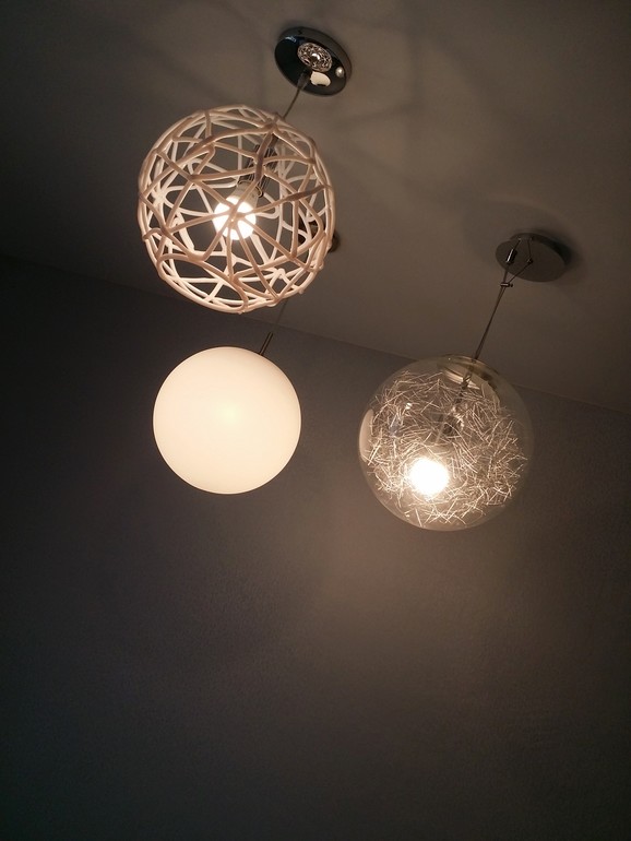 Кухня у нас временная пока (муж притащил в работы декорацию киношную))) так что пока не хочу ее показывать. Для затравочки покажу светильники на кухне над столом и плитку)
