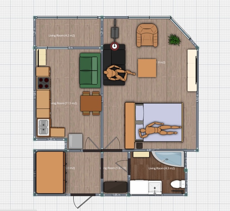 Итак, сначала хочу привести общий план квартиры и планируемым размещением мебели, чтобы было понятно, к чему мы стремимся!