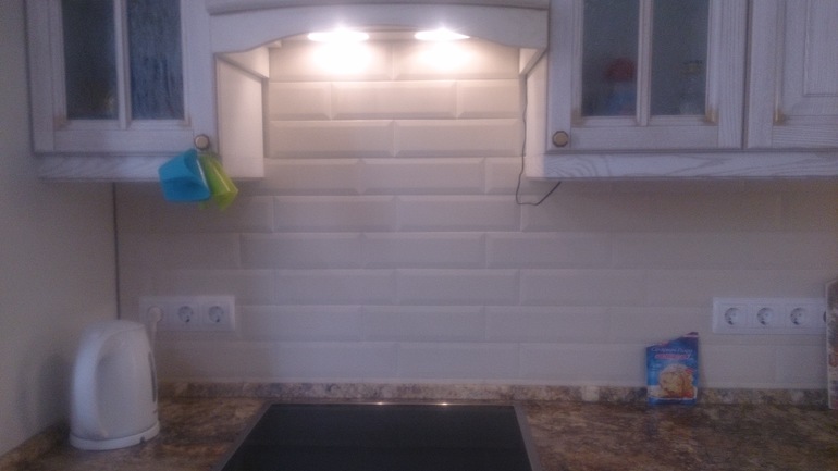 Третий вариант, только наоборот - от темного к светлому. Молочная плитка окажется рядом с темной столешницей и не сольется с ней.