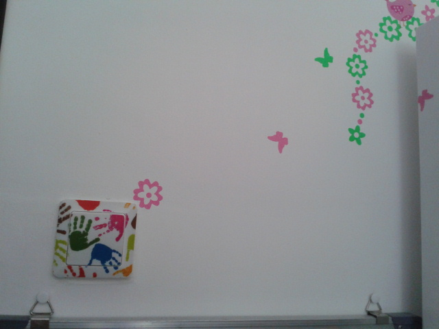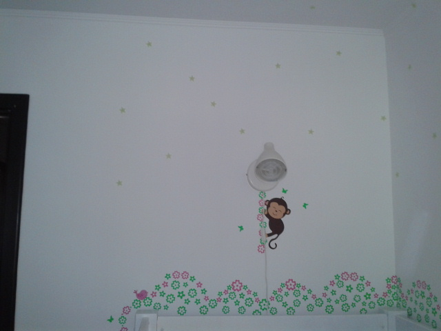 Украшают спальную зону (как и все стены в комнате) наклейки. Покупала на aliexpress 1 розовый и 2 светло-зеленых листа с цветочками. Качество отличное - не бумажные, можно помыть, хорошо отклеиваются и переклеиваются заново.