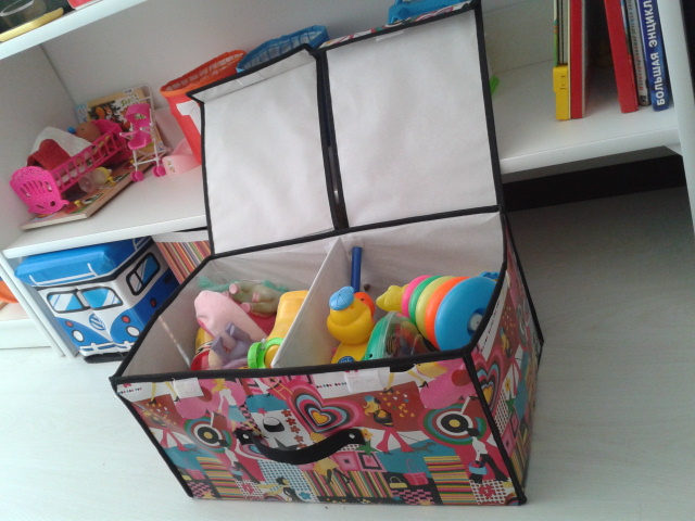 Короб Модница (не нашла по ссылке того же цвета). Тут более крупные игрушки и фигурки.