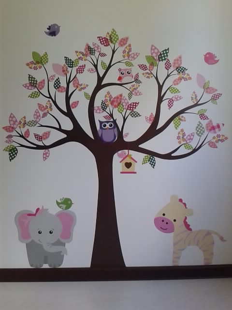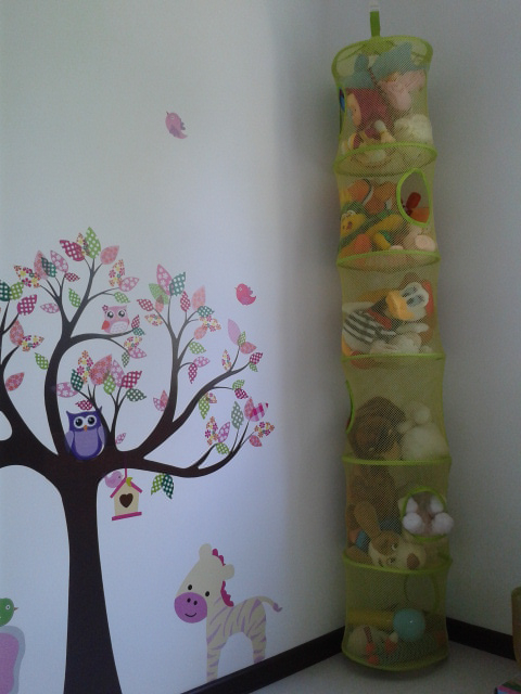 В зоне игр еще хочу постелить зеленый коврик, т.к. полы у нас зимой ледяные. Получится полянка для зверей перед деревом.