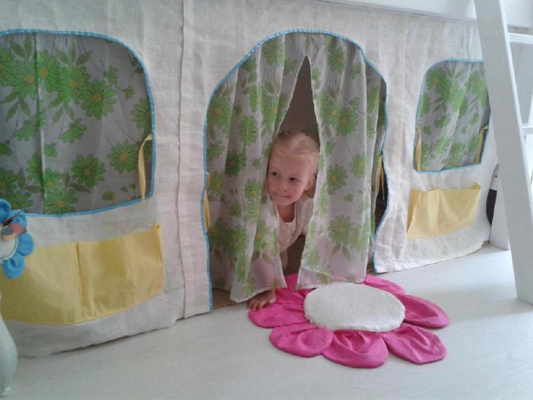 Очень практично и удобно. В будущем ее же используем во взрослой школьной комнате. А в домике свет - тоже интересная идея. Изначально планировала дополнить, но дочери он особо не нужен как показала практика. Поэтому обошлись без него.