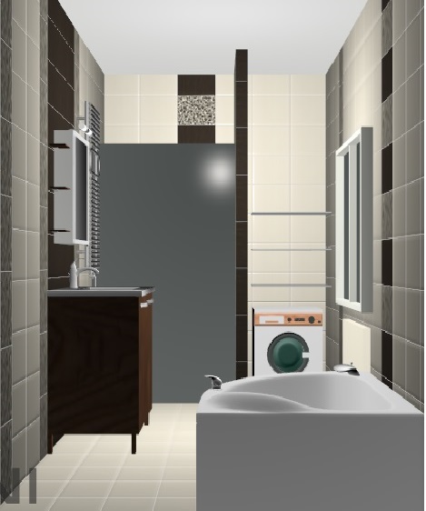 Серая перегородка это стеклянная дверка душа.Закажем ее на фирме и в тон ей, стеклянные полки над стиральной машиной