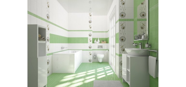 У нас ванная и туалет выложены такой плиткой — санузел. Ремонту четыре месяца. Качество без нареканий. Только декоры нужно аккуратно выкладывать — до сих пор кое-где неочищены от затирки.