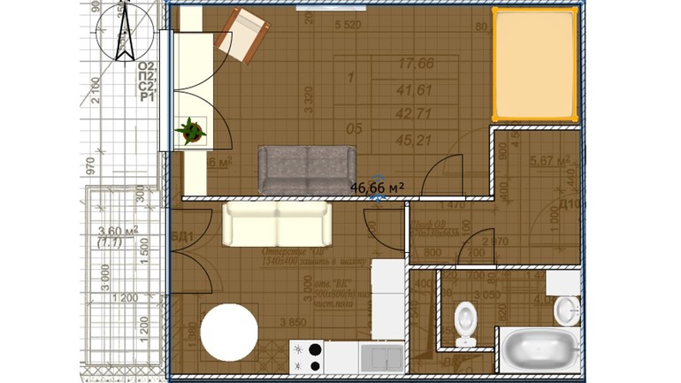 У нас по стене дивана вообще не вариант, дверь нельзя перенести и водопровод переносить точно не будет никто. Камни преткновения у меня холодильник, плита, мойка