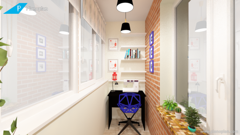Интерьерное решение лоджий, балконовНакидала я сегодня "проект" отделки лоджии. 3м на 1м. Там будет мое рабочее место. И цветуЁчки.