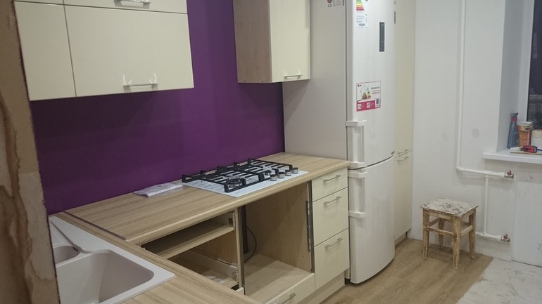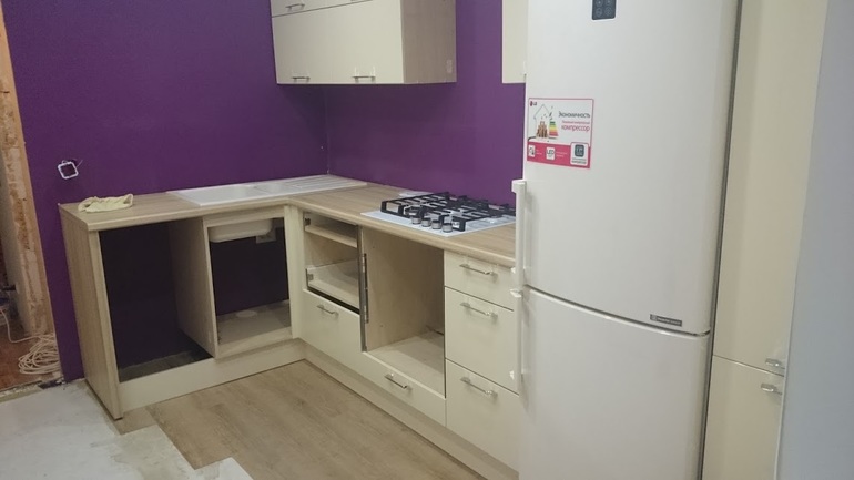 Цвет гарнитура - молочный, пытаюсь максимально подобрать к уже имеющемуся холодильнику.