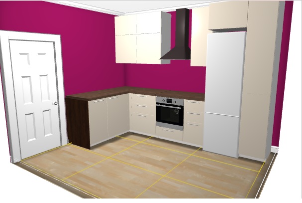 Встает вопрос о цвете столешницы , техники, и возможно корпусов . Склоняюсь к черной технике и столешнице цвета венге , такого темного дерева.