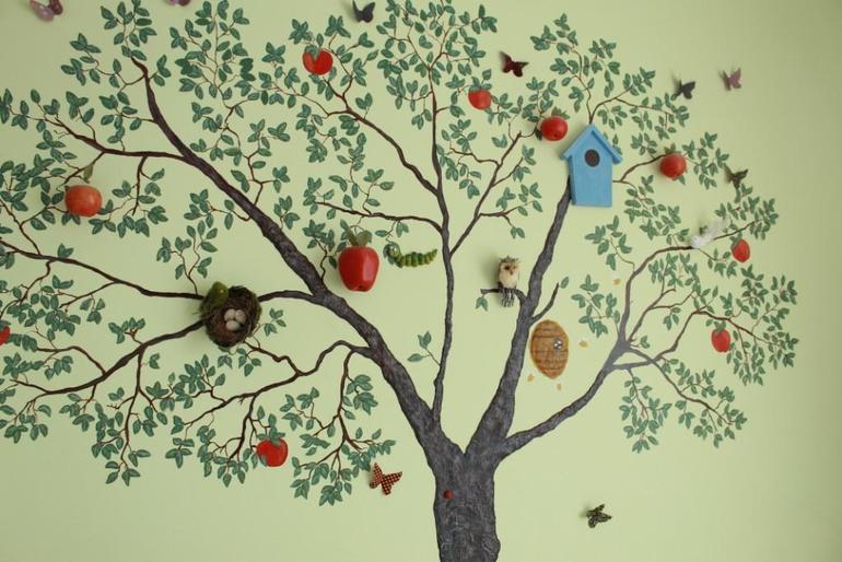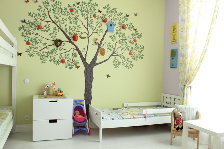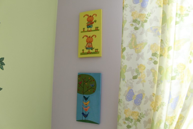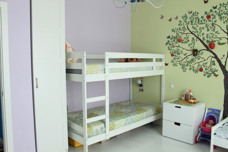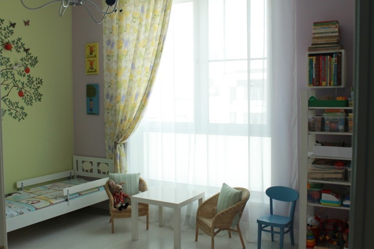 Живут в ней пока Степка и Глаша, по осени к ним переедет младший, пока в нашей комнате его кроватка. На вырост комнату не делали, так как ребята мои еще маленькие, пускай поживут в цветочках да бабочках, наживутся еще потом во взрослых интерьерах. Эстетический вкус им испортить не боюсь))