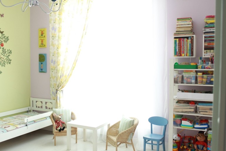 Стены под покраску, гладкие, клеили тонкую стеклопаутинку. Три стены лаванда, одна светло зеленая. Ламинат Квик Степ, венге интенсивный. Мебель вся Икеевская, при моей не особой любви к ней, она самое оптимально для детских по цене, качеству, и удобству.