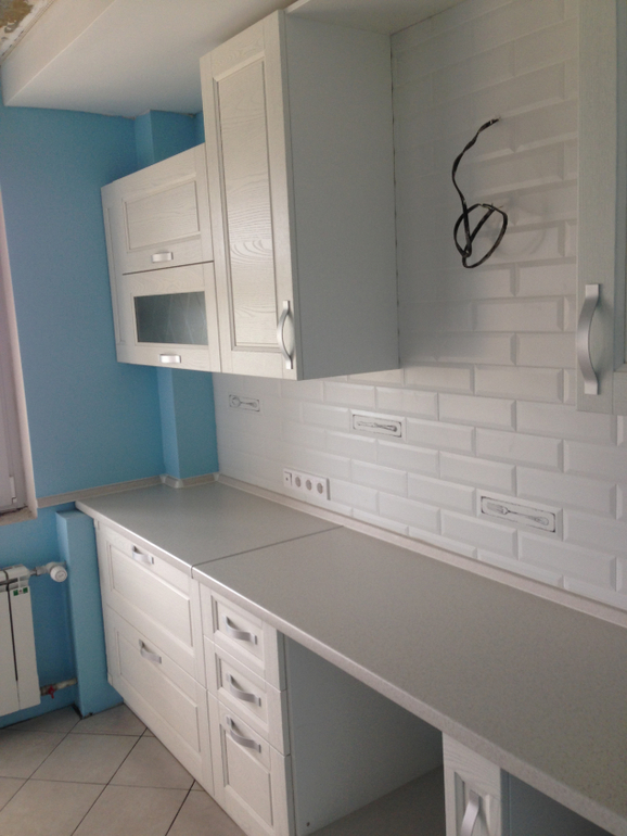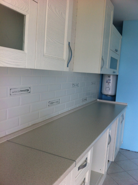 Столешку заказывала длинную, но в мою квартиру она не зашла(( пришлось пилить((( очень жалко, но мастер сделал все красиво)))