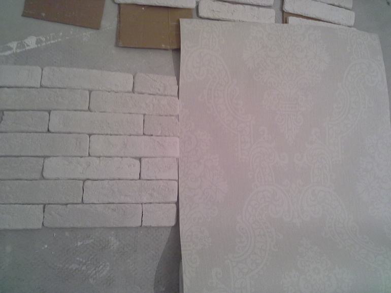 Я не знаю, как вы собираетесь делать, но у нас в гостиной кирпичи сделаны по одной стене и очень похожие обои на другой.