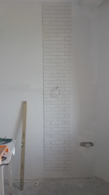 да, представилось, нет, я бы так не делала. Мне кажется, кирпичи нужно не полоской а до конца доводить уже, ххотя идея хороша.