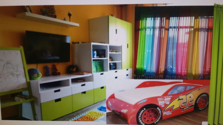 Что вообще хочу: теплую в плане цветов комнату. Не хочу синих, голубых цветов - как-то не нравится мне:( Сынку 3,5 года. Обожает мультик и героев "Тачки":) Поэтому уже изначально у нас есть красная кровать-тачка. От нее собственно и пляшем:) Пытаюсь увязать красную кровать-тачку и бело-зеленую мебель Стува из Икеа. Очень нравится этот жизнерадостный зеленый цвет...