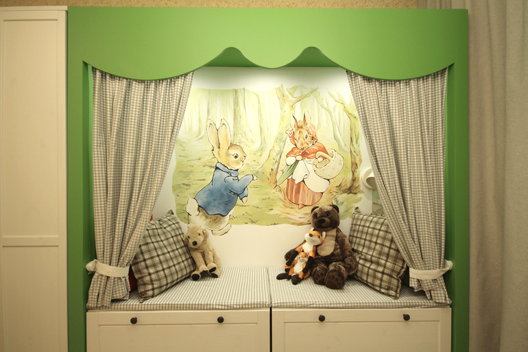 Уж очень мне нравятся такие штуки, но их делают в основном у окна, но в детской и тем более на 13 этаже страшновато мне