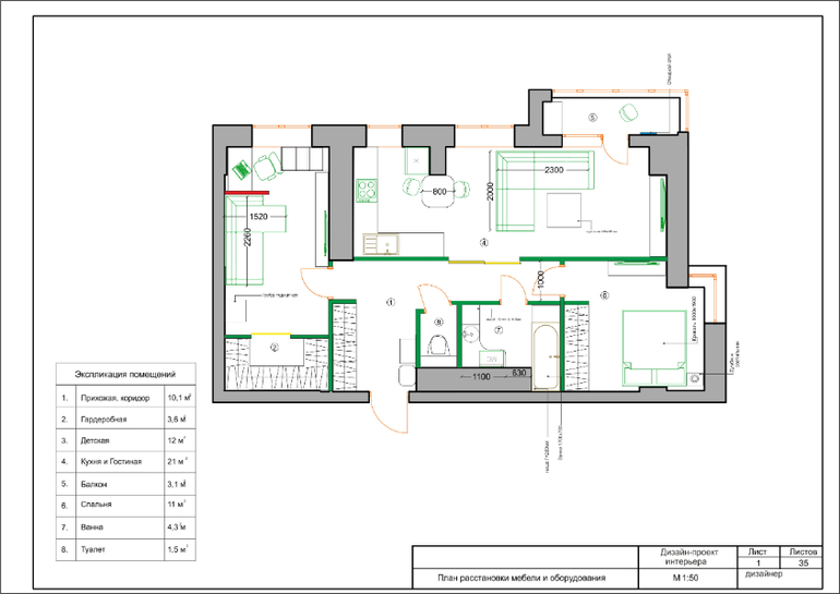 Расстановка мебели +перепланировка 100 р.за кв.м