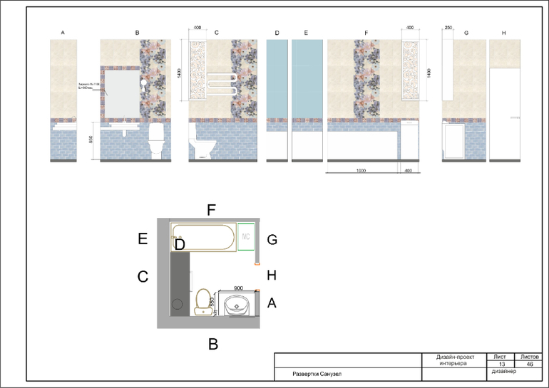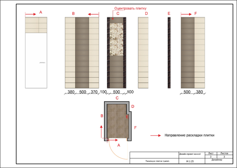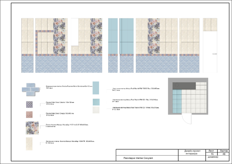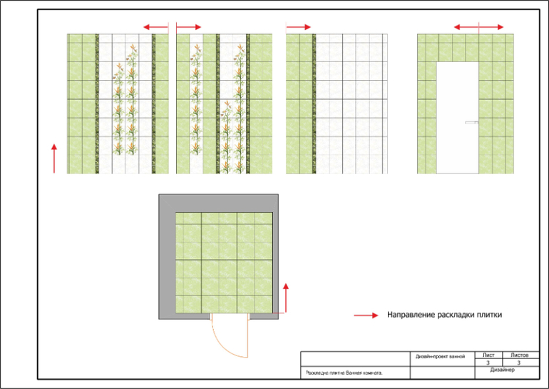 Раскладка плитки 2-3 варианта одной коллекции - 400р.за кв.м) 300р.за кв.м если не нужно подбирать плитку , а уже все выбрано вами)