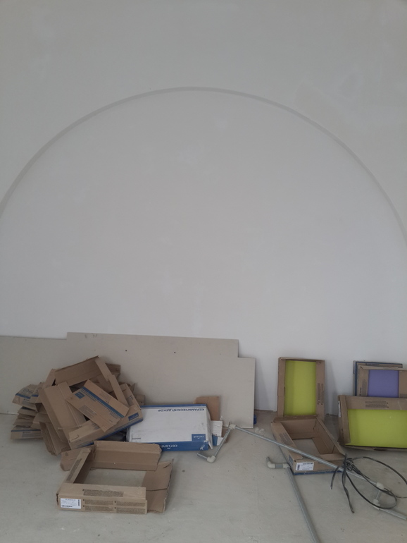 а у меня кардинально другая идея, если сделать изголовье на всю эту арку? можно мягкое самой, раз вы рукоделием занимаетесь. Разбить на сегменты и тканевую обивку.