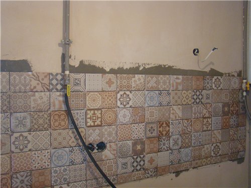 1. Плитка под вытяжку осталась, мебельщик просил не выкладывать что бы по размерам сорентироваться когда будем устанавливать шкафы