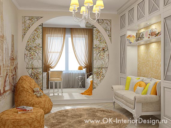 Интерьерное решение детской комнатыЗдравствуйте! Купили однушку, будут проживать родители и два ребенка. В большой комнате хотим выделить зону у окна для старшего ребенка, она у нас первоклассница. У окна будет вдоль одной стены кровать с ящиками, напротив стол рабочий, над ним полки для книг и узкий шкаф для одежды, на полу коврик.