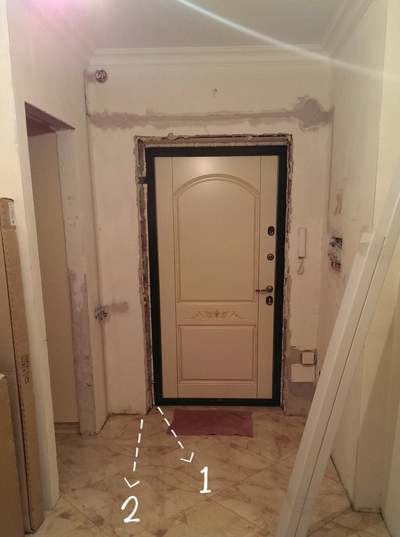 С точки 2 и поставить ещё одну дверь, чтобы скрыть проём с коричневой рамкой входной двери.