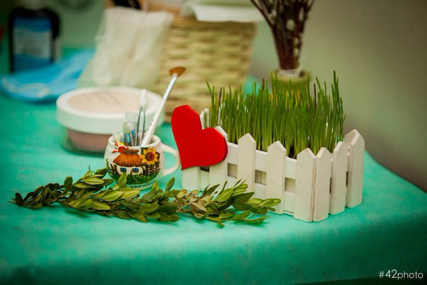 а еще можно в стиле  фильма "шоколадная фабрика" или как "пряничный домик"-в общем накупить красивых красочных леденцов в виде кругов, шарикови каждому клиенту еще и дарить их, вату сахарную....и тд..