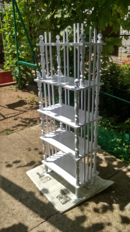 Чудная этажерка. Если бы вы ее выкрасили в разные цвета, т.е. она бы стала у вас полосатой, то получился бы отличный арт объект)
