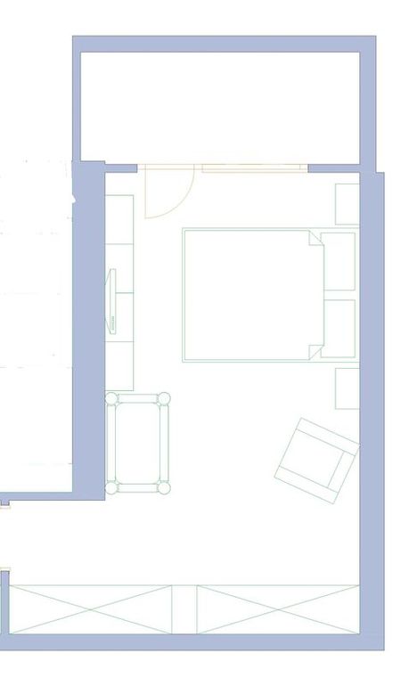 И еще, я бы предложила, возможно, рассмотреть такое расположение мебели.