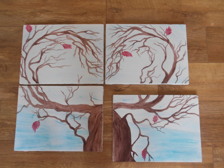 Заранее предупреждаю,что я не художник и азов, так сказать, не знаю,но рисовать люблю...Цвета использовала такие,которые присутствуют в интерьере. Висеть на стене будет в таком варианте: три сегмента вместе,один как бы "поплыл"))))