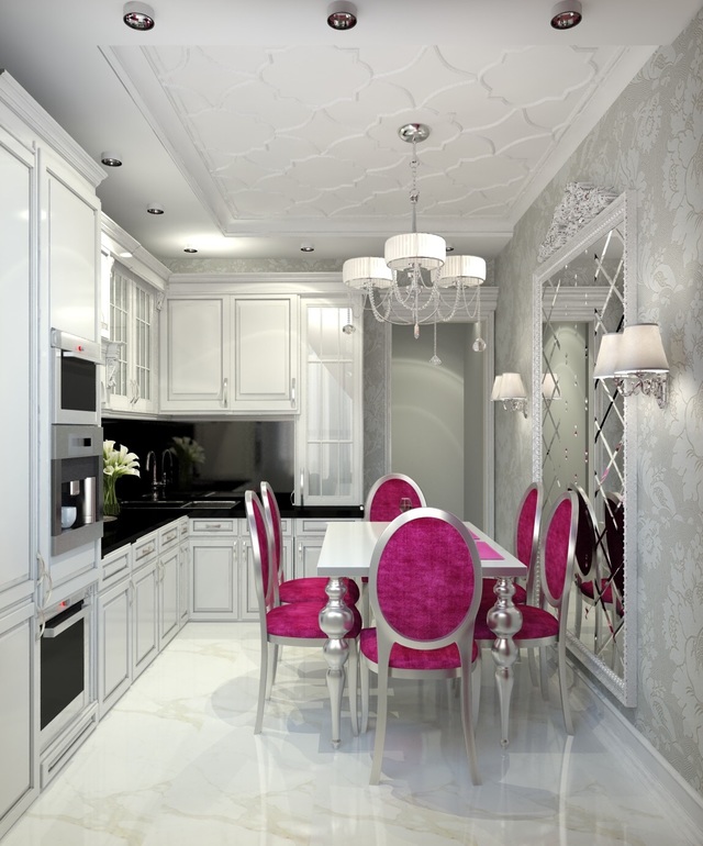 в предыдущей кухне у меня была подсветка такая, как на рисунке, но не было подсветки под кухонными шкафами. В принципе света хватало, но сейчас в новой кухне я планирую подсветку именно под навесными шкафами и подсветку в самих шкафах со стеклянными дверцами. Что касается микроволновки и духовки два в одном, то давно пришла к выводу, что лучше брать отдельные девайсы, они, как правило, более качественные, чем 2 в 1 или 3 в 1 и т.д. В Вашем проекте смущают только стулья около зеркала в плане безопасности