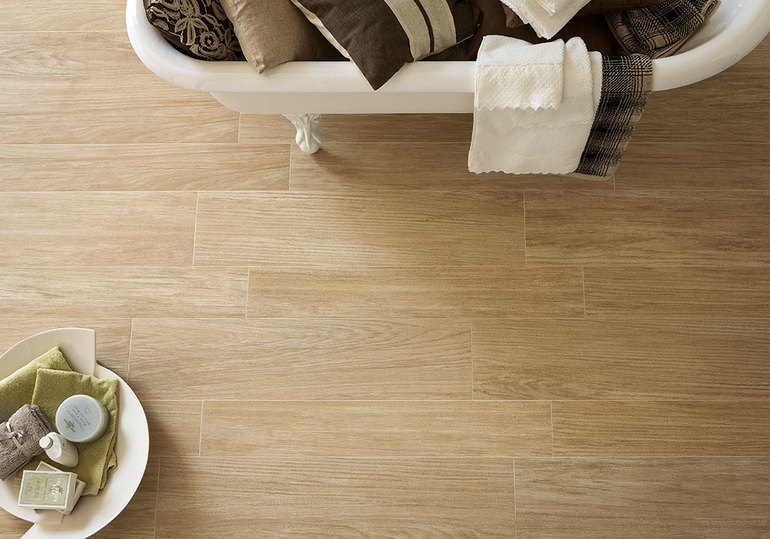 но есть вариант выложить плитку под дерево. она как раз подойдёт под ламинат квик степ