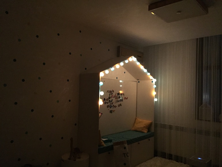 Сам дом украсила тайской гирляндой, ночью хорошо выполняет роль ночника, свет очень мягкий.