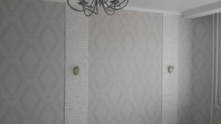 Не видно, клеила сама, достаточно легко, на универсальный клей пуфас. Их единственный недостаток то, что они 53 см шириной. Сгладили все мелкие недочеты стен.