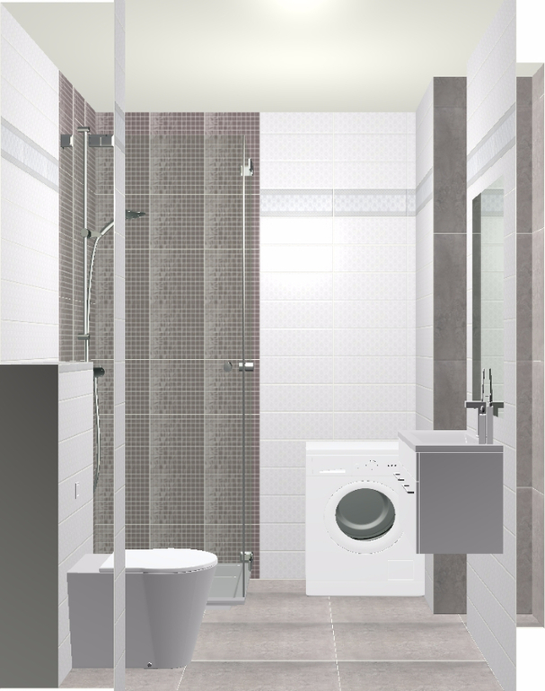 Я бы под дерево сделала. Уютная ванна получится. А зачем полка над стиралкой? Вы не рассматриваете вариант сделать столешницу над ней? Или вставить ее в колону, в которой шкафчик будет для химии.