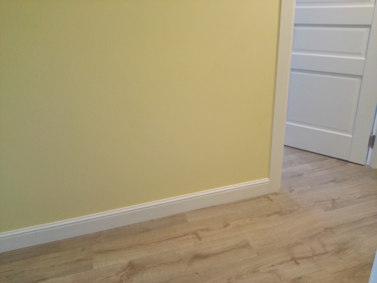 Здравствуйте. Какие уж нашла фотографии ) Ламинат красивый, не шумный, не холодный, ходить приятно. В основном везде ламинат глянцевый и гладкий, этот ламинат матовый и шершавый что ли ) Даже не знаю как сказать, мыть сложнее, тряпка не так легко скользит, но терпимо. У нас везде щели между досками со временем появились, но у нас большая площадь одним пластом уложена, может в этом дело. Или влажность высокая была, даже не знаю что предположить ( Но снова я бы этот ламинат не взяла.