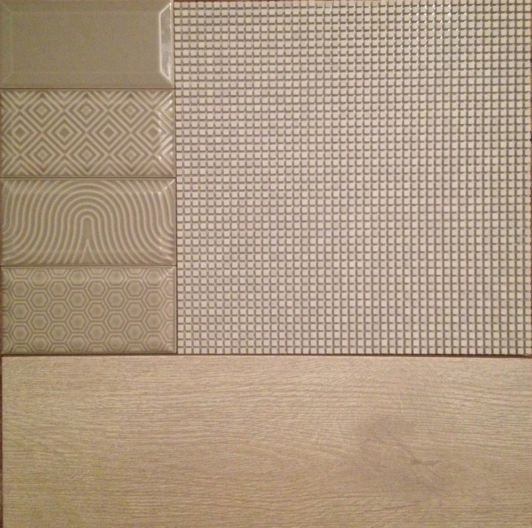Мозаика была нужна для ванной. До этого уже купили плитку-кабанчик оливкового цвета и напольную плитку под дерево. Оставалось только найти мозаику, которой мы планировали отделывать акриловой поддон для душевого уголка. Хотелось чего-то простого, незаметного, т.к. плитка-кабанчик и так довольно активная.