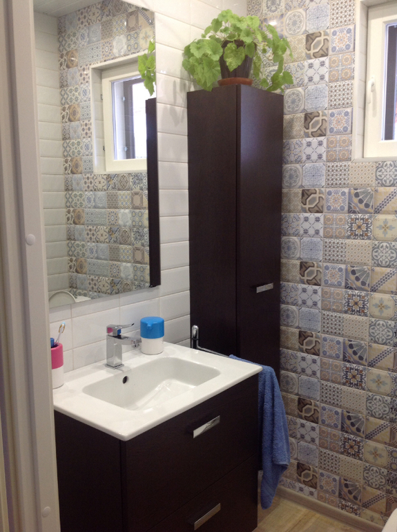 Интерьерное решение ванной комнатыМы приехали в гости к родителям, а тут как раз заканчивается ремонт, кое-что вам покажу)
