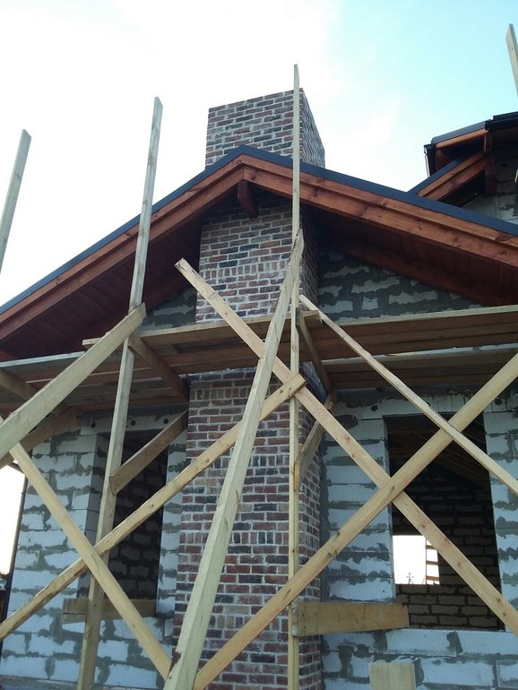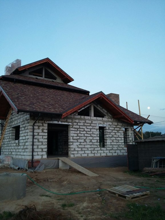 Ну как видите, крыша тоже есть, мягкая черепица Тегола..ну и моя отдельная с мужем любовь - каминная труба. Я, как истинная женщина, сделала всем мозг с цветом крыши и трубы, но результат потрясающий. Кстати кирпич остался и мы подумываем выложить им портал камина и изнутри, чего добру пропадать)))