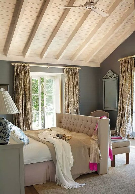 На втором этаже само собой такой потолок будет без скатов крыши. Балки уже везде есть, осталось подшить вагонкой